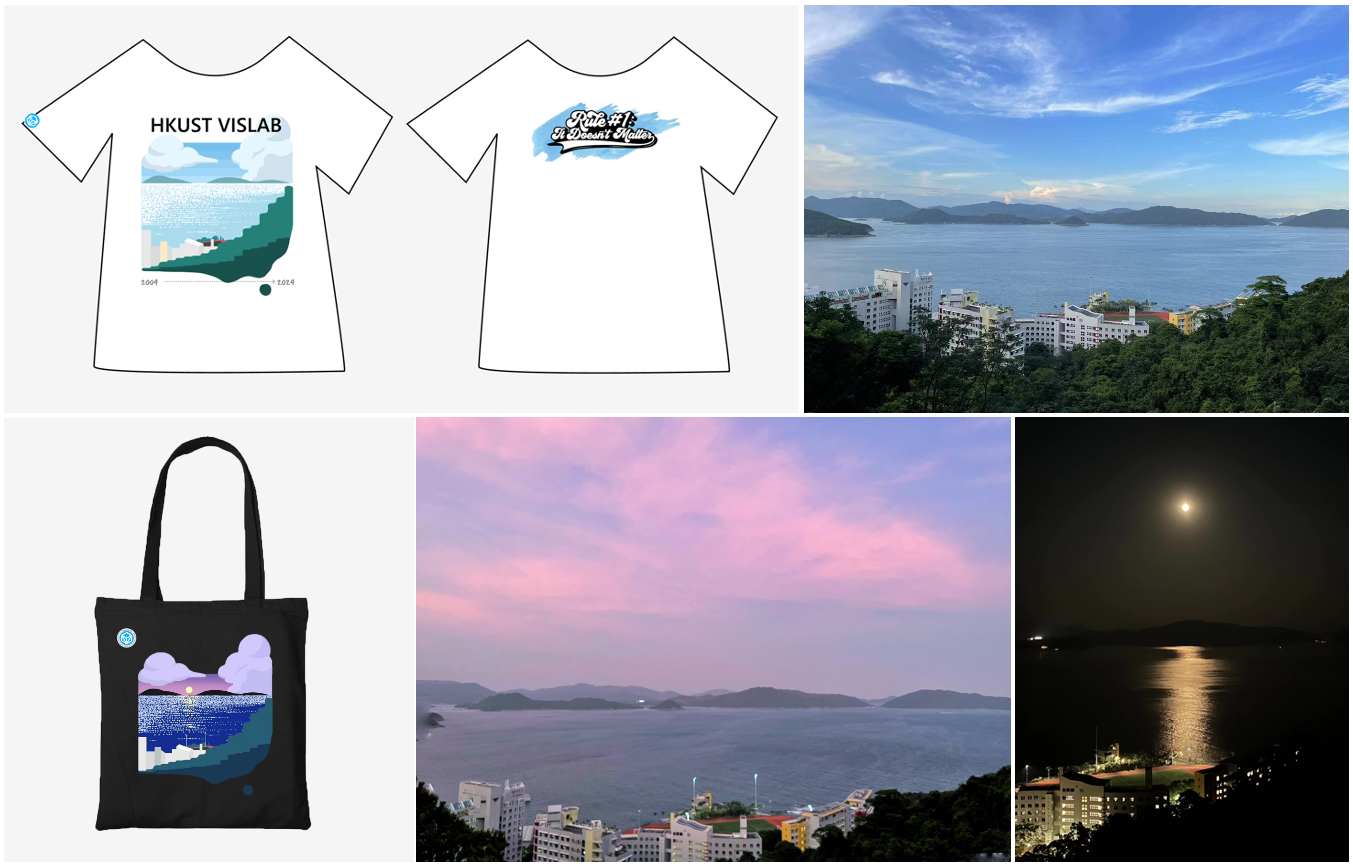 My inspiration came from the place we all share and love: the iconic, breathtaking view from the HKUST campus overlooking Clear Water Bay. I spent time working with a designer capturing it at all hours—the crisp blue sky of midday, the dreamy pink and purple sunset, and the serene moon reflecting on the water at night. These images feel like our collective memory.